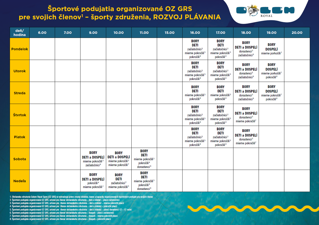 V GOLEM CLUB BORY Mall sa nachádza 25 metrový bazén